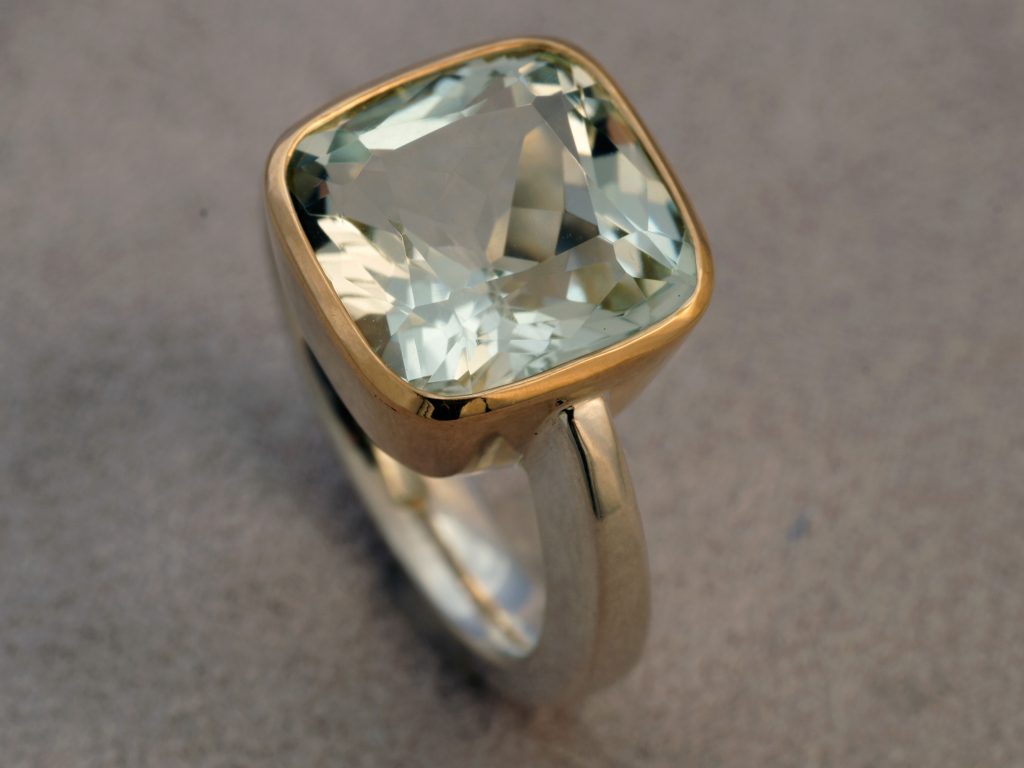 Hier wurde der schöne Aquamarin nachgeschliffen und ein neues Schmuckstück entstand.