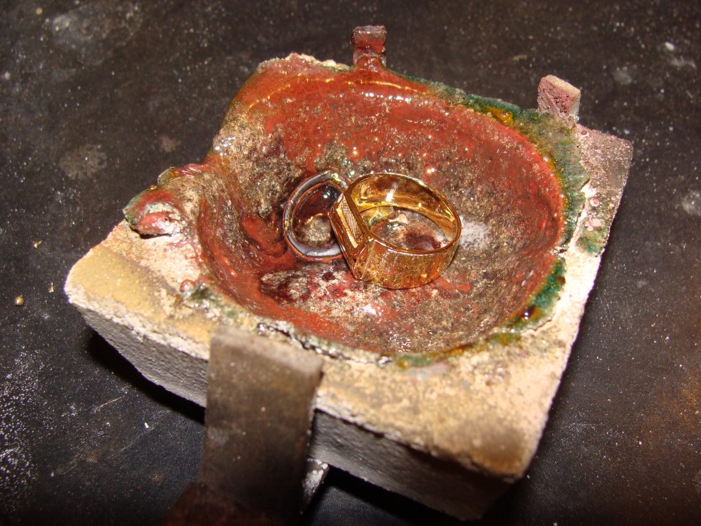 Aus dem eingeschmolzenen Gold entsteht ein neuer Ring