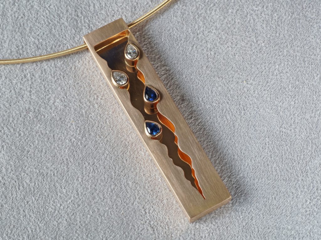 750/- Gold und Edelsteine, Tropfen Diamanten und Saphire, vom  Kunden