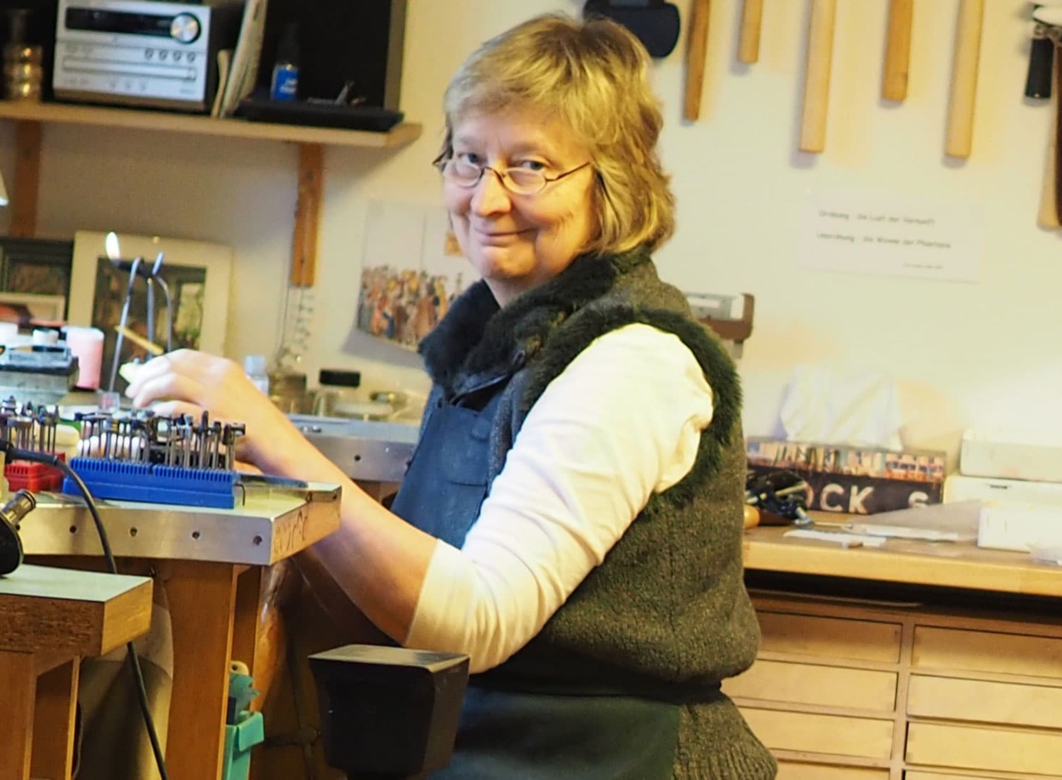 Goldschmiedemeisterin Mokume Gane Familienschmuck Umarbeitung Familienschmuck Neuentwicklung Eheringe Ringe Halsketten und Kettenanhänger Ohrringe Suomi Waschgold Eine Auswahl meiner Arbeiten können sie im Online-Shop „Exklusiv & Schön“ sofort erwerben. Zurück zur Startseite
