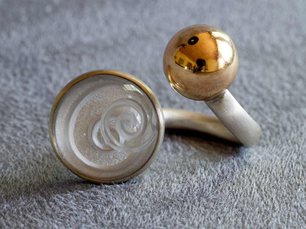 Mein Anliegen ist es die Persönlichkeit der Trägerin, des Trägers mit einem Ring zu unterstreichen. An einem Ring kann man sich erfreuen, da man ihn beim Tragen immer wieder betrachten kann, der Stein leuchtet in der Sonne oder das Muster passt so wunderbar zur Hand.
